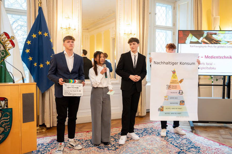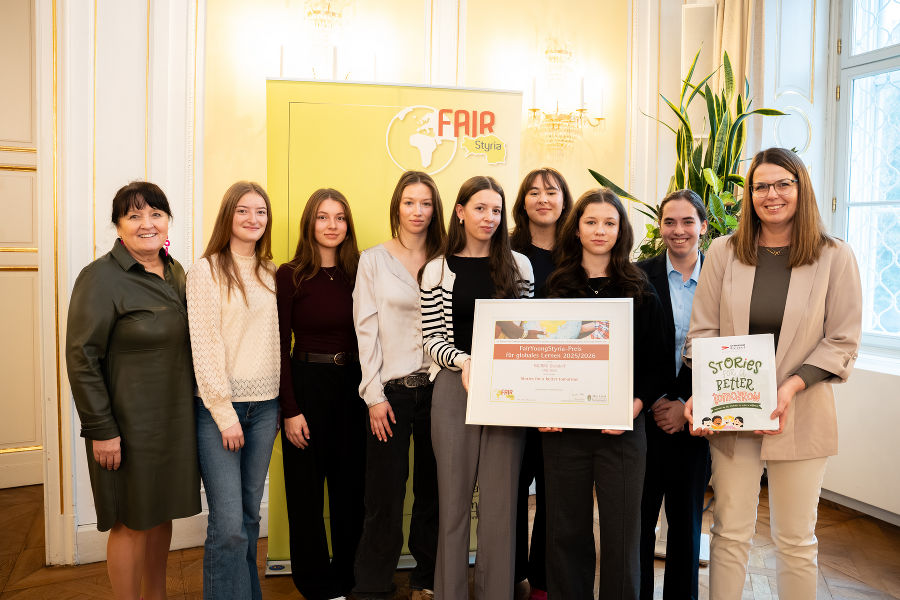 Graz (12. Februar 2026).- Aktuelle Probleme und Herausforderungen machen vor keinen Landesgrenzen Halt, sie erfordern vielmehr die Zusammenarbeit über Kontinente hinweg: Vor diesem Hintergrund der Globalisierung lädt daher das Land Steiermark mit der FairStyria-Bildungsoffensive und dem FairYoungSytria-Preis Schulklassen und Schulgruppen ein, ihre Ideen zum „Globalen Lernen" in Projekte umzusetzen. Gestern, Mittwoch (11. Februar 2026), wurden wie in den vergangenen Jahren die von einer hochkarätigen Jury prämierten Ideen im Weißen Saal der Grazer Burg präsentiert und die Preisträgerinnen und Preisträger von Landeshauptmann-Stv. Manuela Khom ausgezeichnet.