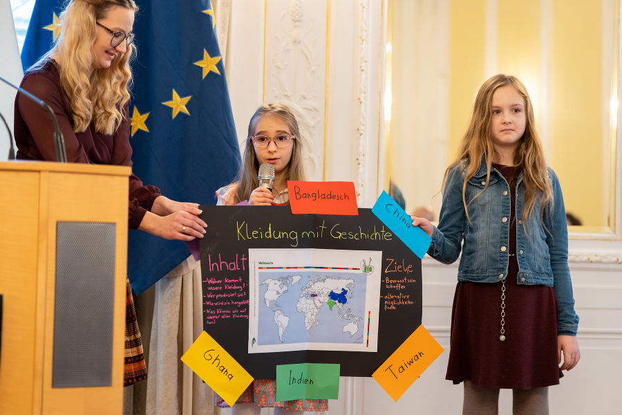 Die Kroki-Schule Krottendorf-Gaisfeld wurde für das Projekt „Kleidung mit Geschichte" ausgezeichnet, das sich mit den Produktionsbedingungen von Kleidung, Lieferketten und Konsumverhalten beschäftigt. Angesprochen werden u.a. faire bzw. unfaire Arbeitsbedingungen, Fragen der Nachhaltigkeit und Selbstwirksamkeit. Eingebunden sind in das Projekt das UBZ Graz, Carla und Weltladen Voitsberg.